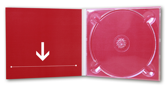 Schlitzstanzung innen links, zum Beispiel zur Aufnahme einer zusätzlichen Karte (Covercard) oder einer kleinen Broschüre (Booklet, bis zu 12 Seiten, Endformat 12 x 12cm).